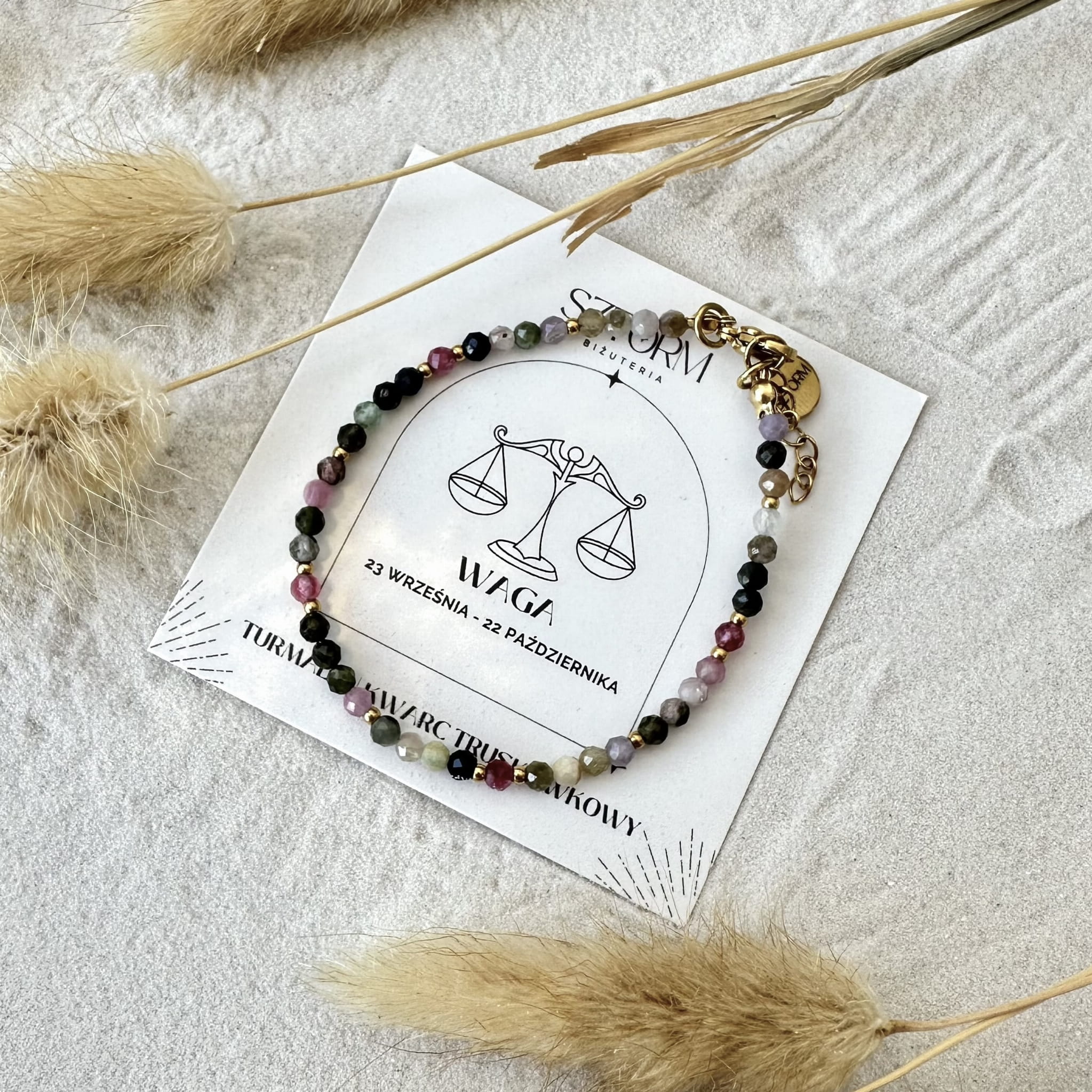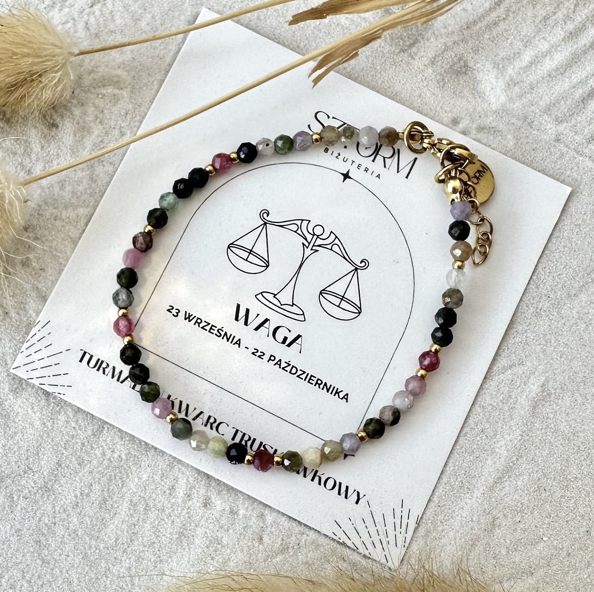 Bransoletka "Waga" z Turmalinem i Kwarcem Truskawkowym – kolekcja Znaki Zodiaku