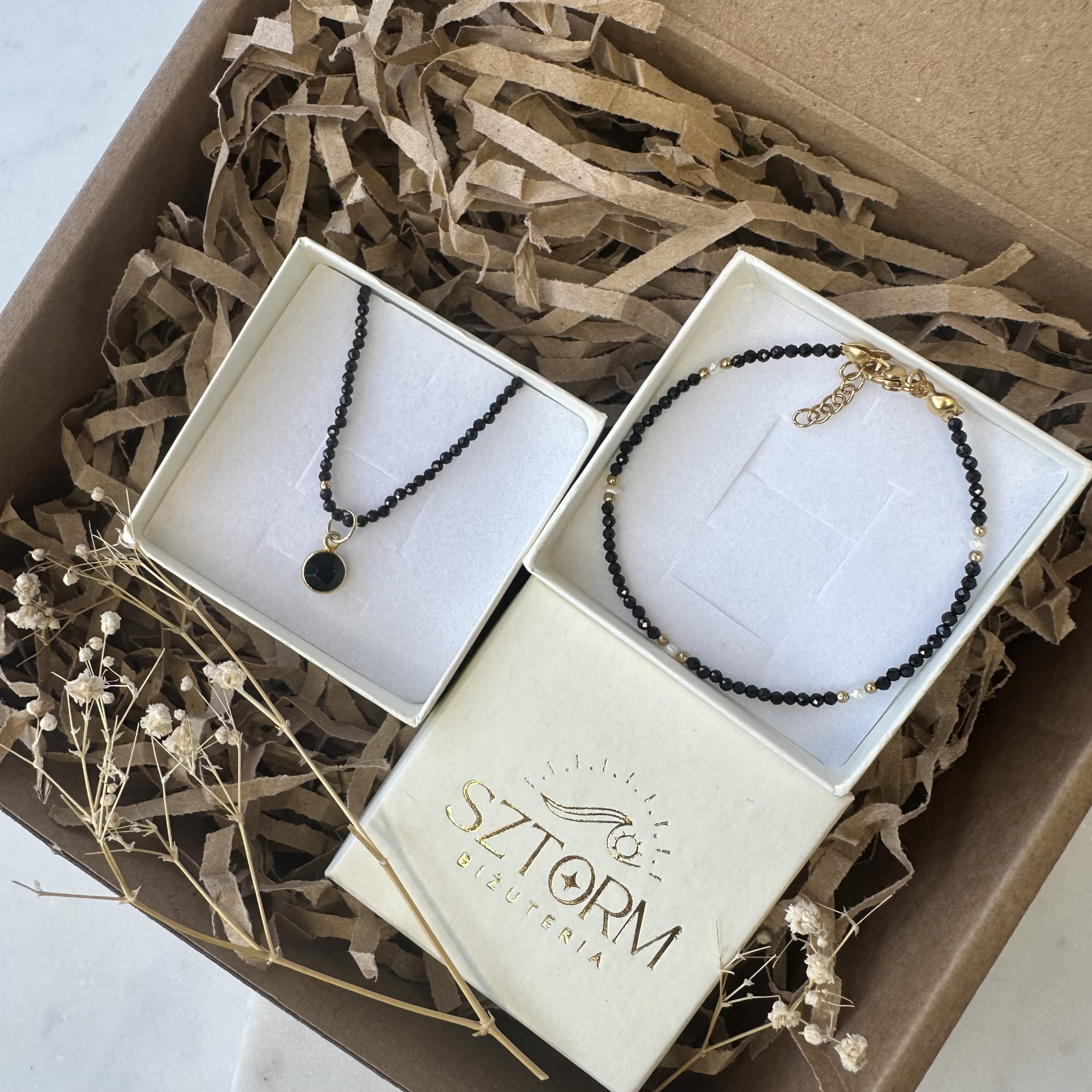 Zestaw czarnej, klasycznej biżuterii ze Spinelu. Gotowe zestawy biżuterii to idealny prezent dla bliskich ale również dla nas samych.