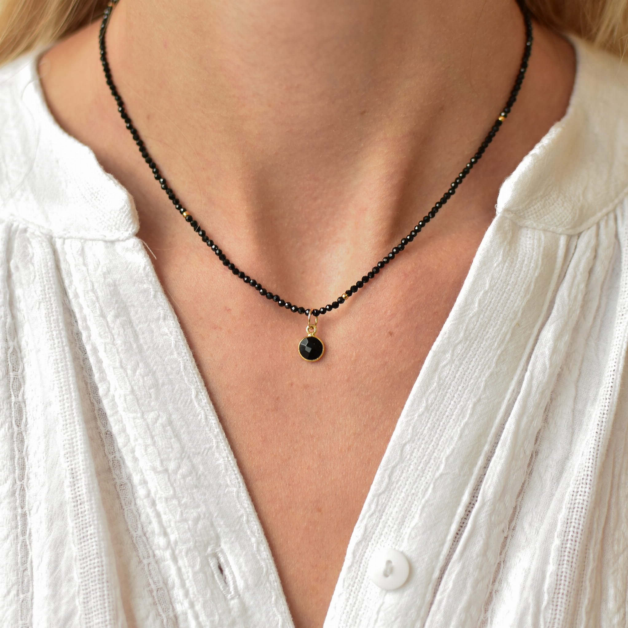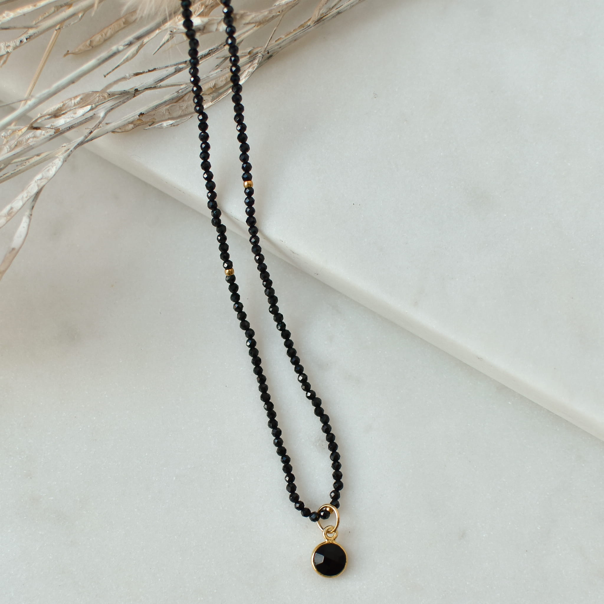 Naszyjnik CLIFF wykonany z kamienia naturalnego Spinelu, złotych kulek ze stali chirurgicznej.